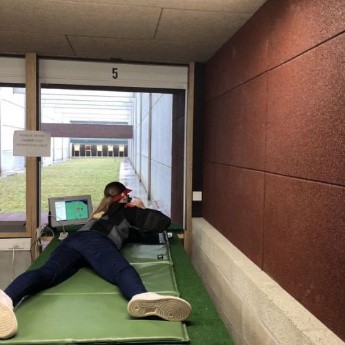 Notre stand dispose de 10 lignes entièrment informatisées (très rare pour des stand à feu) . Mais ces dix lignes sont disposées sur deux niveaux avec un astucieux pare-balles qui empêche les tireurs du haut de tirer dans les cibles du bas et vice versa.