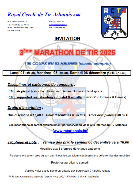 Le RCTA vous invite à son troisième marathon de tir qui se déroulera dans ses installations les 1 ,5 et 6 déc 2025